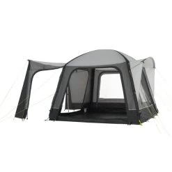 Die Gestängebögen sind unterschiedlich lang. Dadurch entsteht eine nach vorne und hinten abfallende Form, die stabiler im Wind steht und das Gesamtgewicht reduziert. Für frische Luftzufuhr sorgen die beiden Lüfter an den Stirnseiten. Sie sind mit einem Moskitonetz ausgestattet, welches unliebsame Bewohner draußen hält.